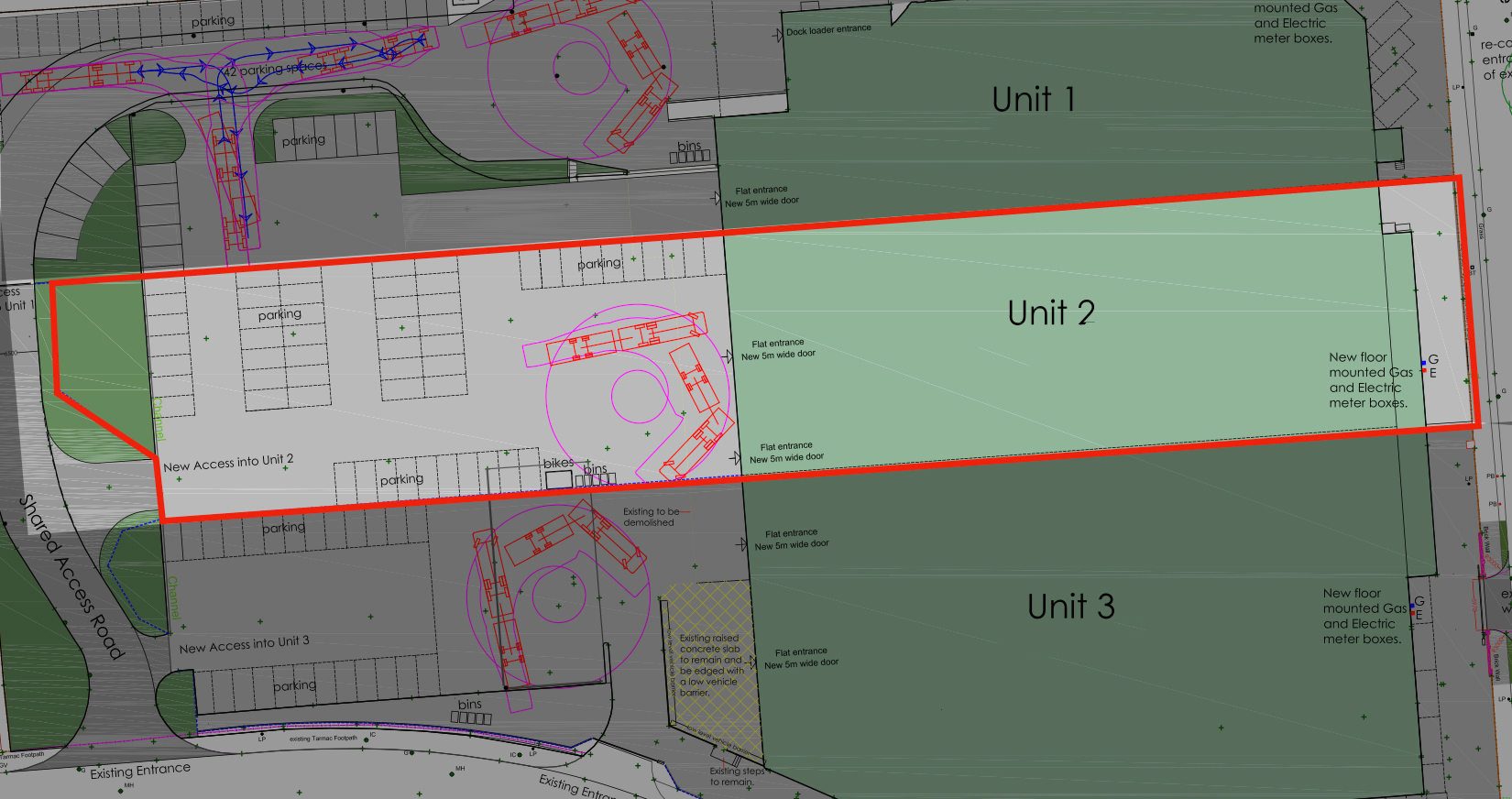 The development offers a mixture of different size units ranging from 17,605 sq.ft to 34,777 sq.ft available to buy or lease.